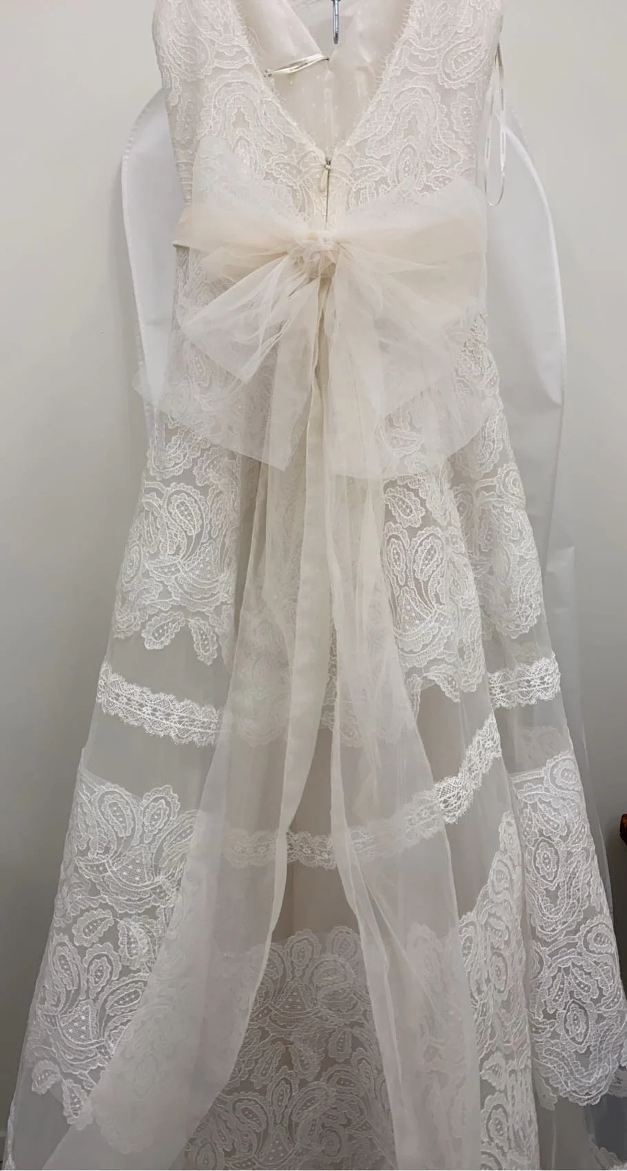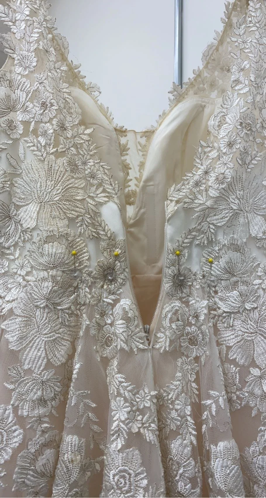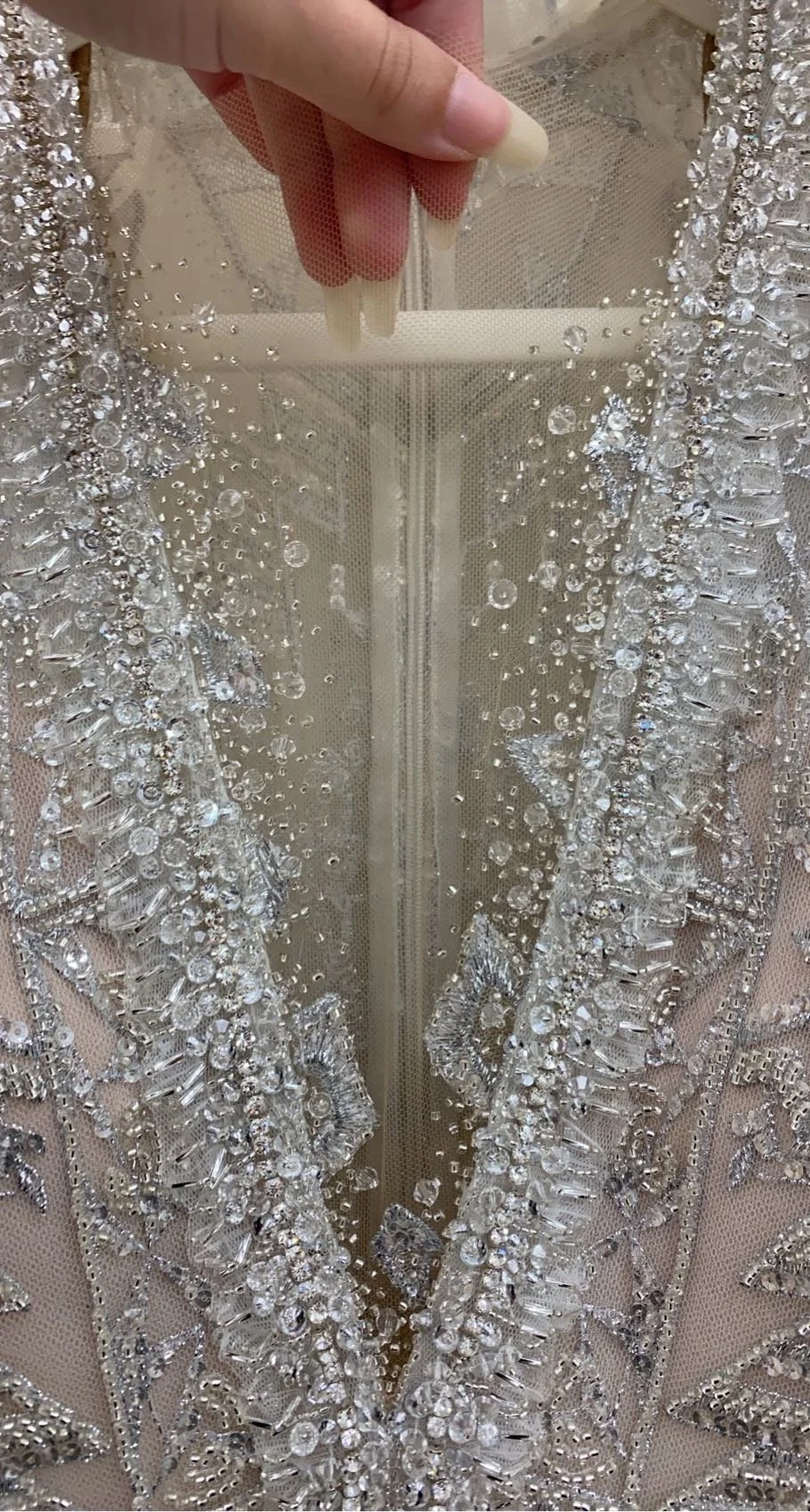 Bride wanted more coverage and detail but still showcase the plunging neckline