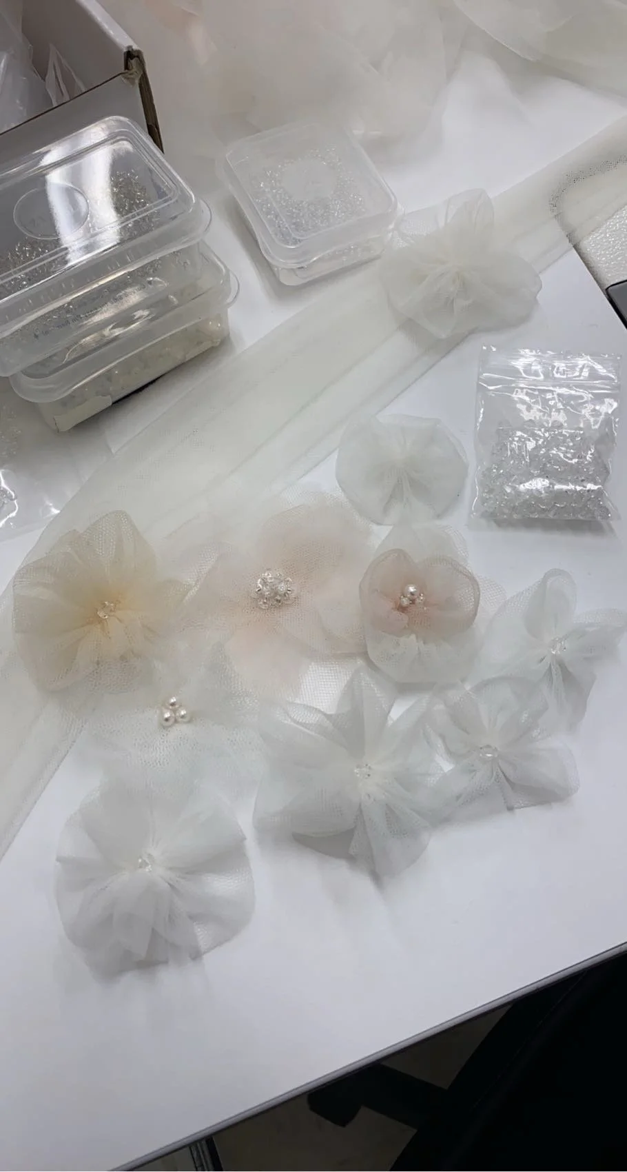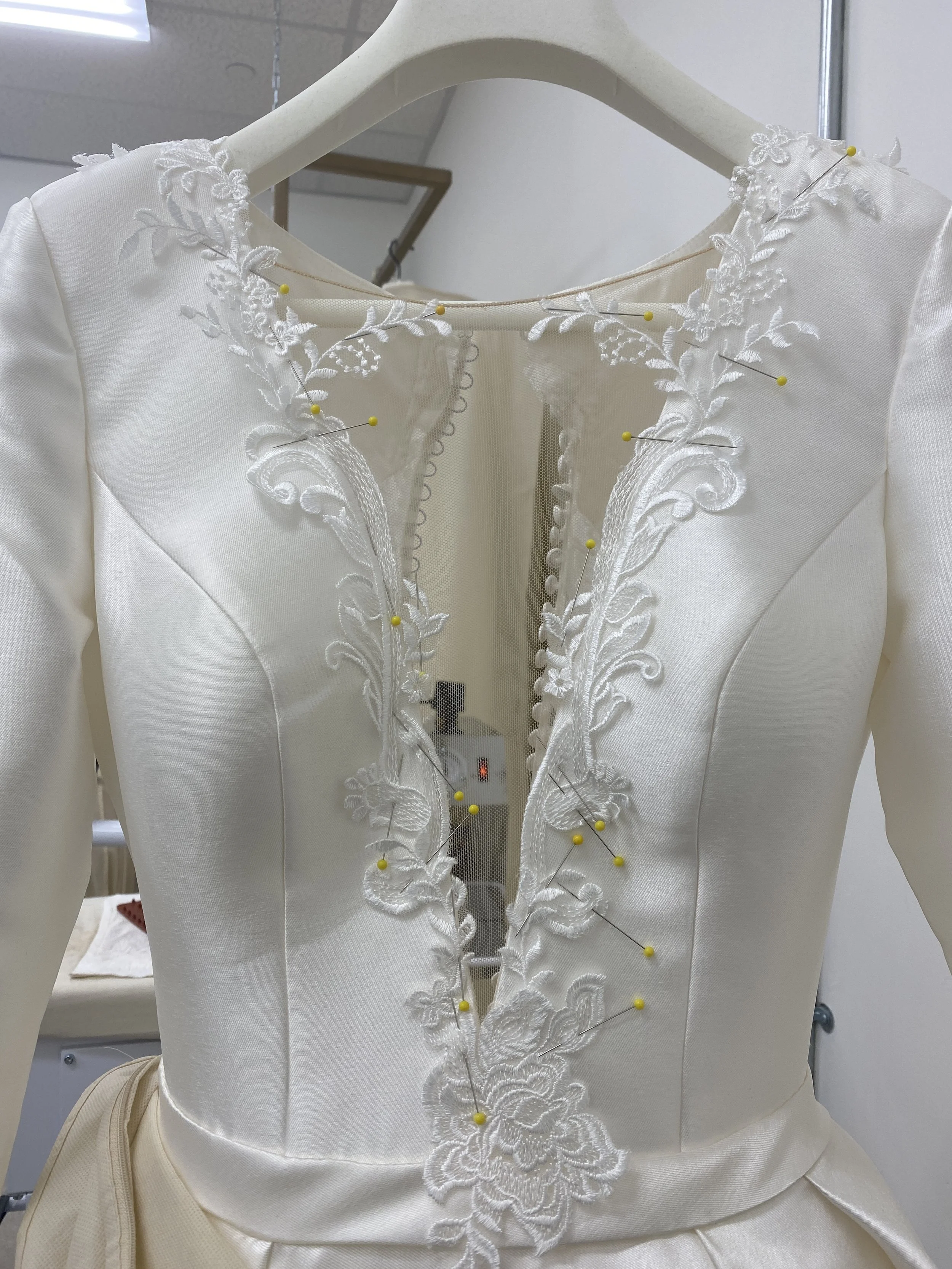 Bride wanted more coverage with beading and applique leftover from dress hem